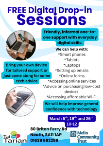 Tai-tarian are running drop in sessions at our centre in March. If you need help with getting online, completing tasks online etc. drop by.